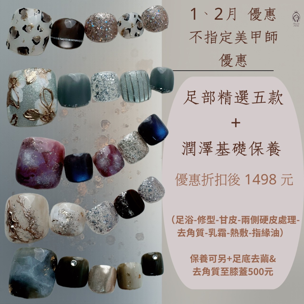 12/16 2025 冬季店內進修課程 ▪️足 部 凝 膠《卸下重做卸~免費》 ▫️單色凝膠 只要599元 ▫️漸層、璀璨 只要699元 ▫️多款樣式任選 只要899up元 《足部凝膠需搭配基礎保養 折扣後 599》 (足浴-指…